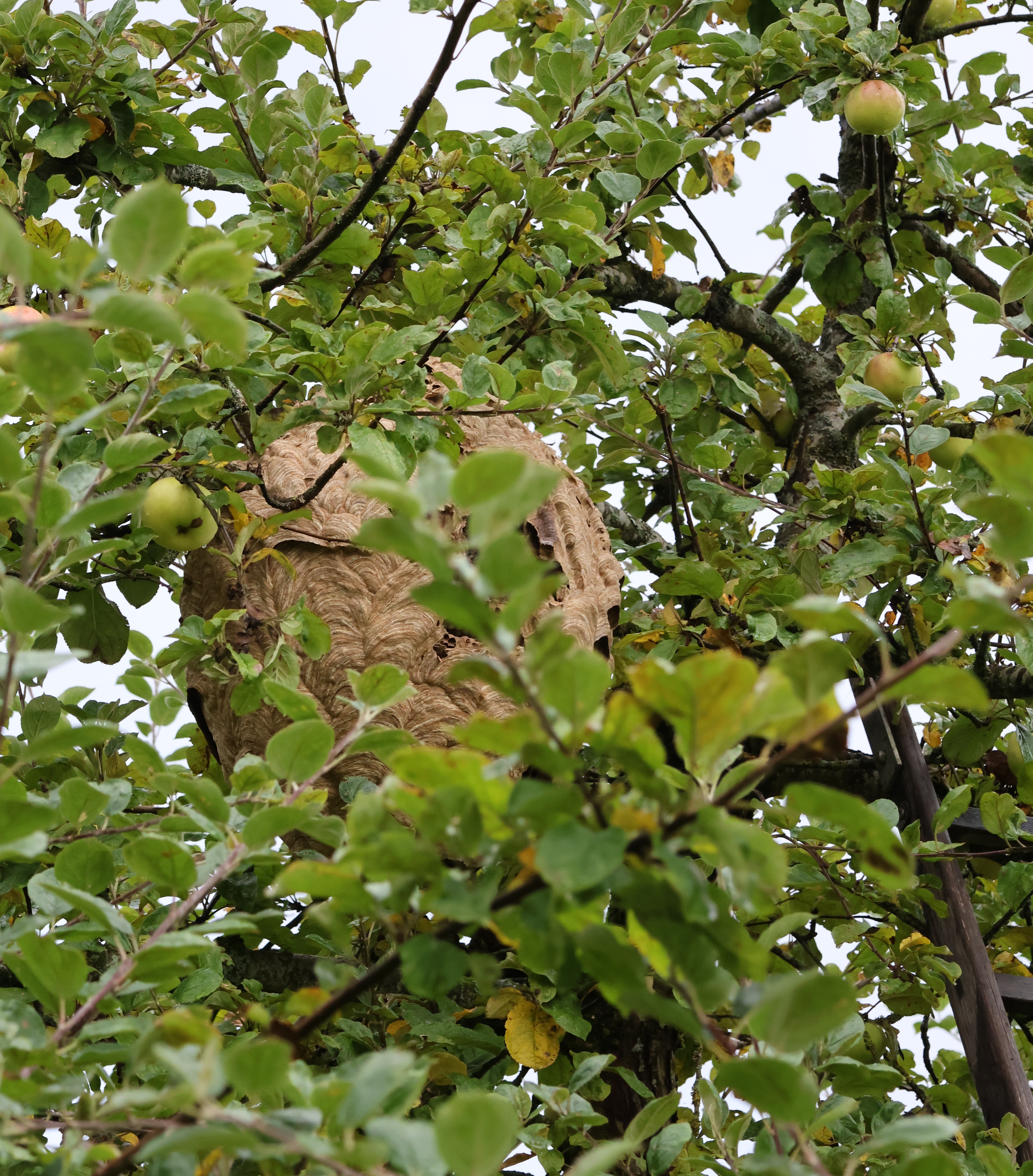 Vorsicht bei der Obsternte: Nester der Asiatische Hornisse in den Bäumen!