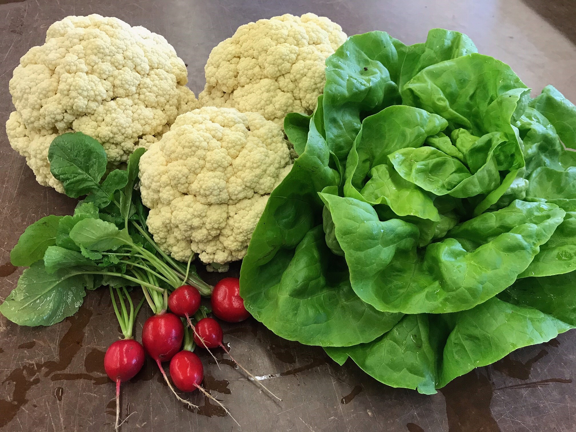 Wunderschöner Kopfsalat, Blumenkohl und Radiesli sind die ersten «Früchte» unserer Arbeit. Da freut sich das Gärtnerherz!