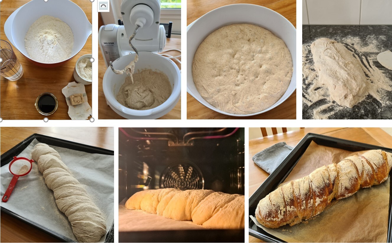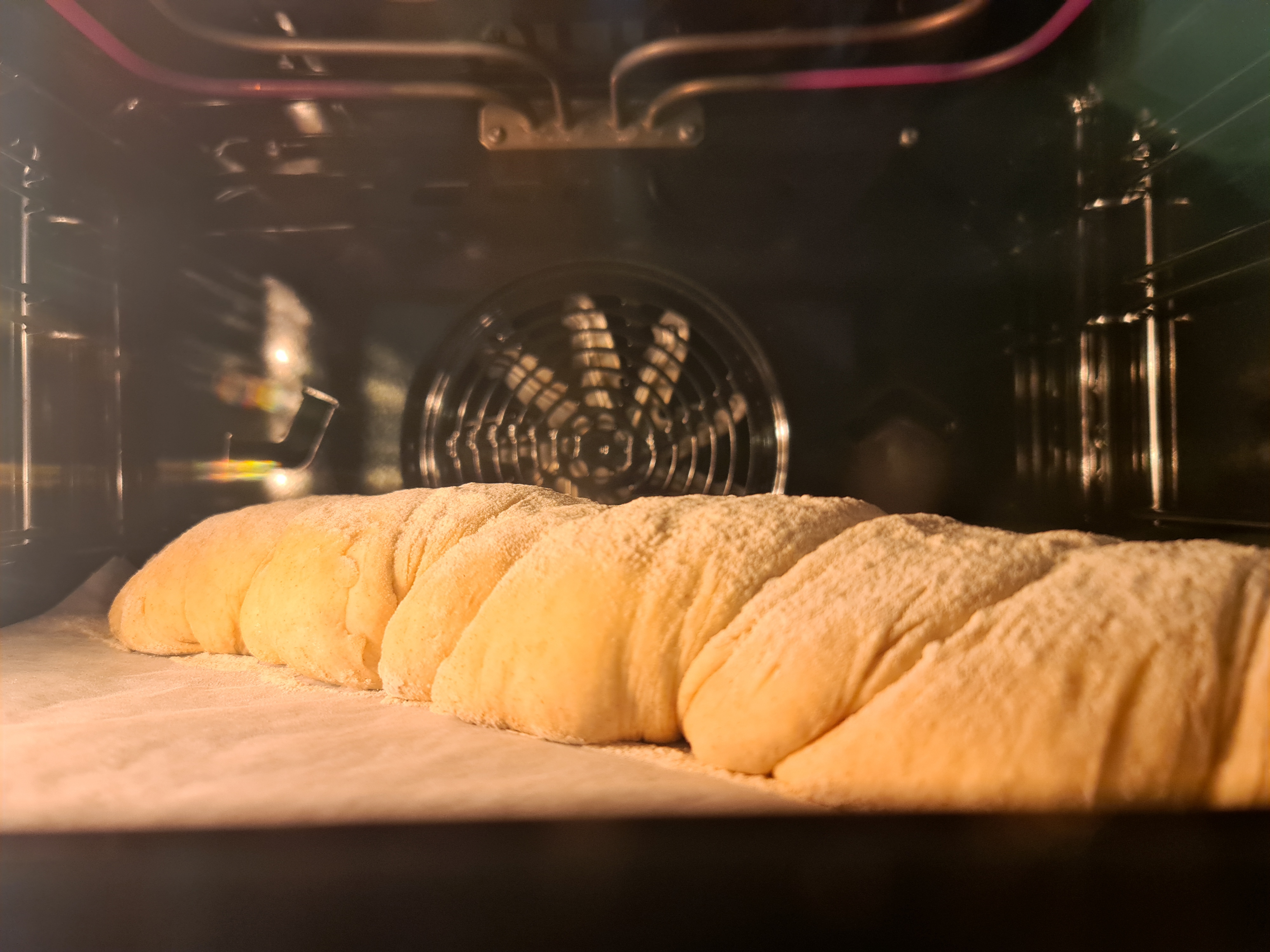 Brot auf der zweituntersten Rille zirka 30 Min bei 230°C Ober- und Unterhitze backen.