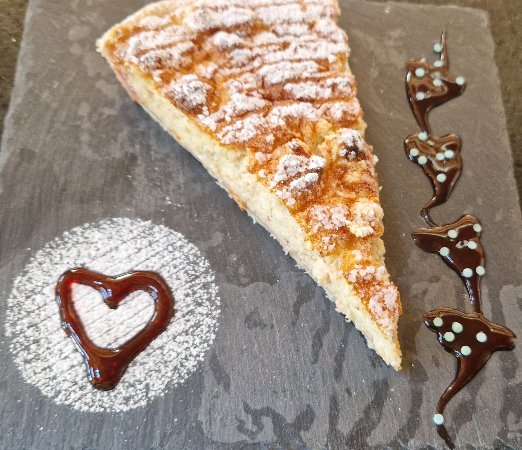 Als Erdbeerfan habe ich aber noch von diesen wunderbaren Früchten - von letzter Saison - in meinem Tiefkühler. Seit einigen Jahren habe ich immer grosse Mengen an pürierten Erdbeeren im Vorrat. So kann ich jederzeit frische Konfitüre, tolle Cremen, schmackhafte Torten oder ein feines Birchermüesli herstellen. Um die Vorfreude auf die bevorstehenden Ostertage und den Frühling zu zelebrieren, passen Erdbeeren doch perfekt. Oder? So backe ich bereits jetzt einen Griessfladen (an Ostern sagen wir dem dann Osterfladen). Gerne mit einem wunderbaren Erdbeercoulis auf dem Teigboden.