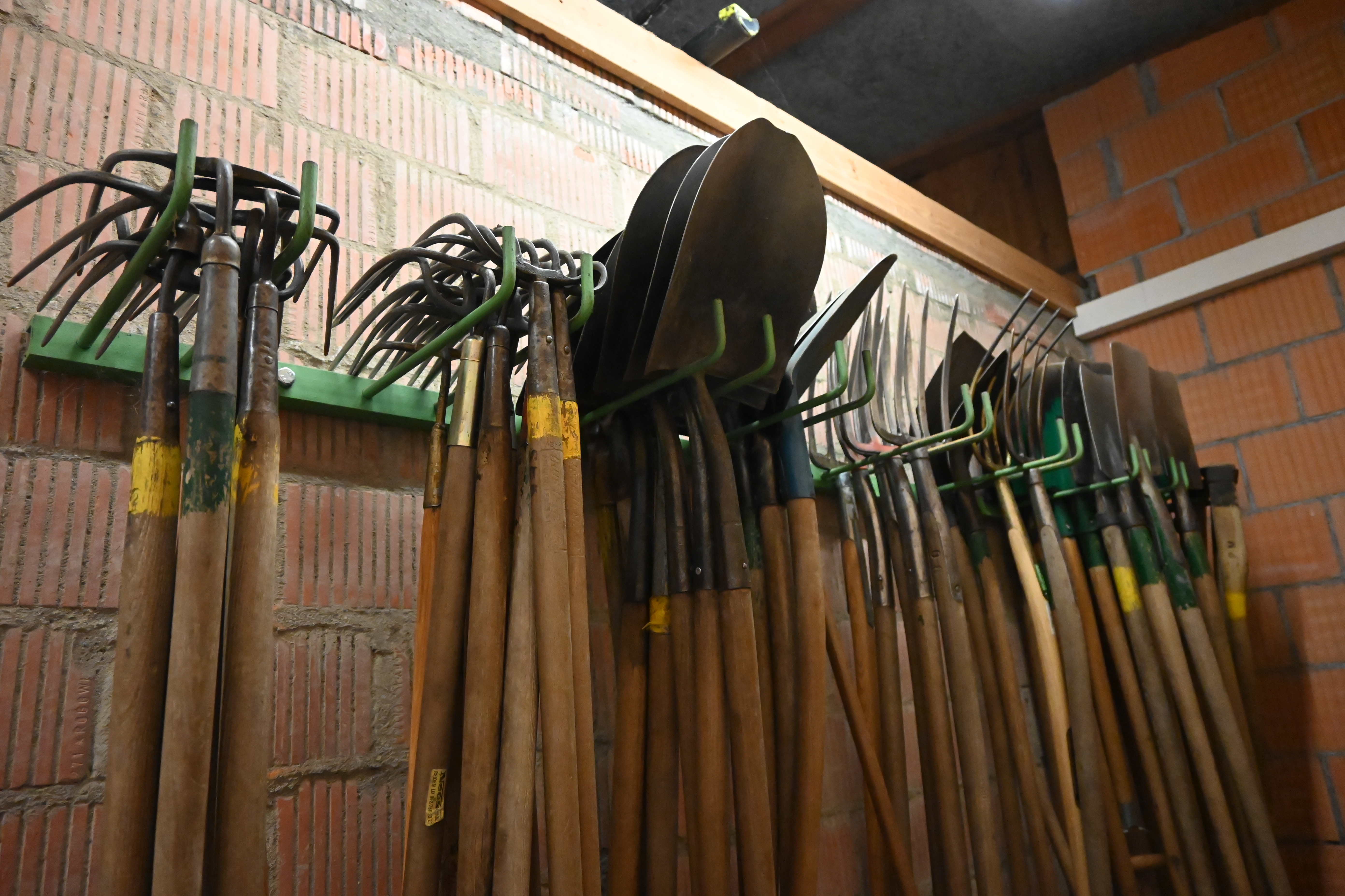 Im Gewächshaus ist es auch ruhiger geworden. Dort überwintern die Mutterpflanzen (Geranien). Das heisst nicht, dass wir Gärtner in den Winterschlaf gehen. Endlich findet man die Zeit aufzuräumen und zu putzen. Das Werkzeug wird gewaschen und geölt. Dazu verwenden wir ein Speiseöl. Die Blatthacken/Schaber und auch die Pendelhacken werden geschliffen und wenn nötig wird auch ein Werkzeugstiel ausgewechselt.