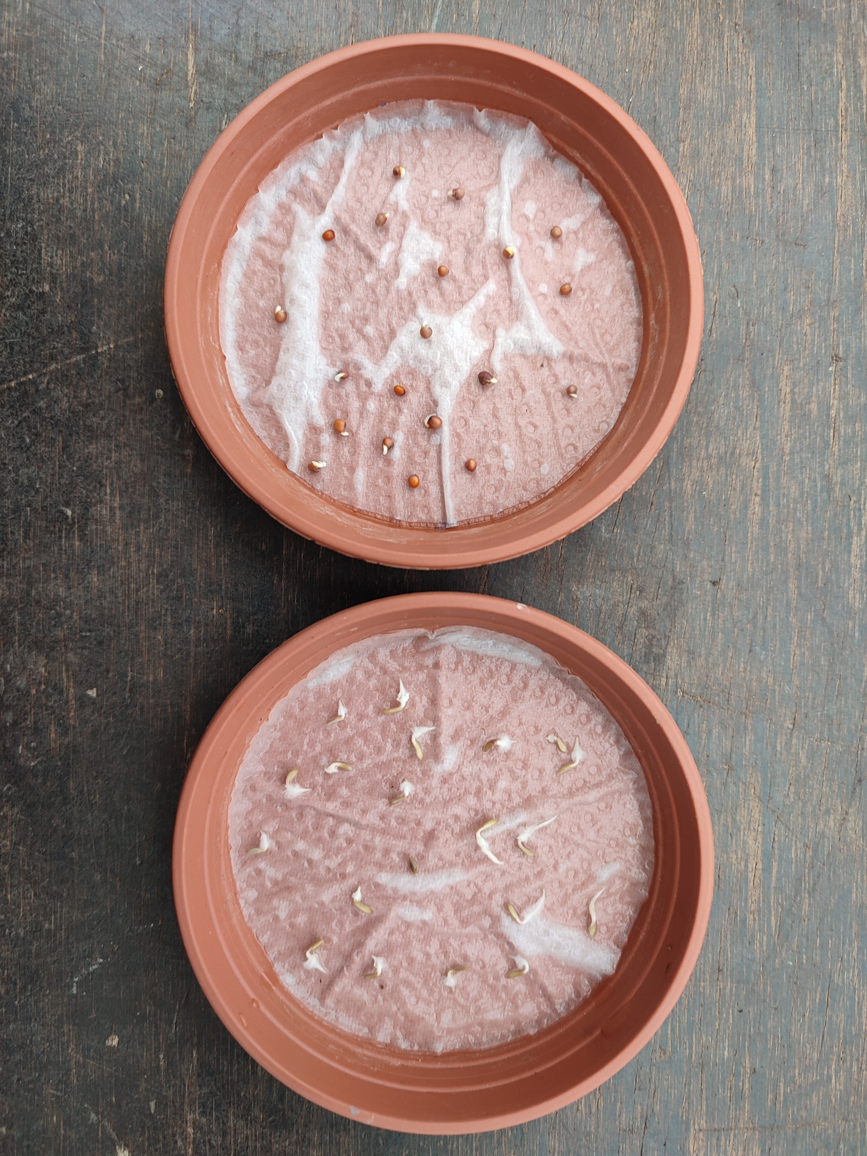 - Samen auf Haushaltpapier gleichmässig verteilen