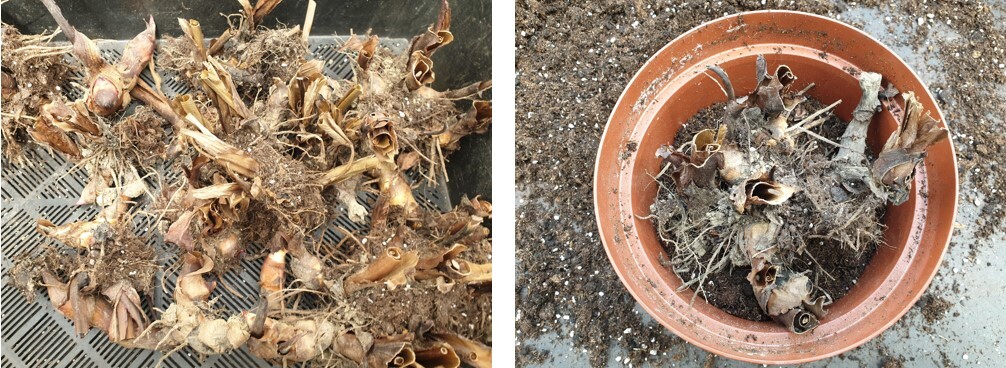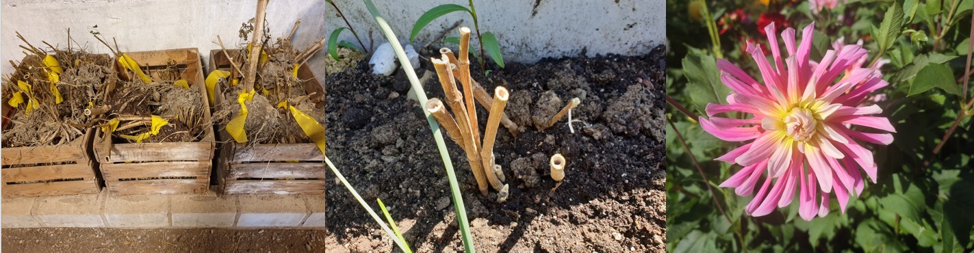 Wichtig: Die Knollen treiben nur aus, wenn auch ein Stängel an der Knolle ist. Wenn sie verschiedene Sorten haben, schreiben sie diese laufend an, damit sie im Frühling noch wissen, welche Knolle wie blüht (zum Beispiel mit Absperrband). Den Winter durch, können sie die Knollen im kühlen Keller lagern, sie müssen über den Winter nichts damit machen. Im Frühjahr werden sie, sobald keine Frostgefahr mehr besteht, ausgepflanzt.