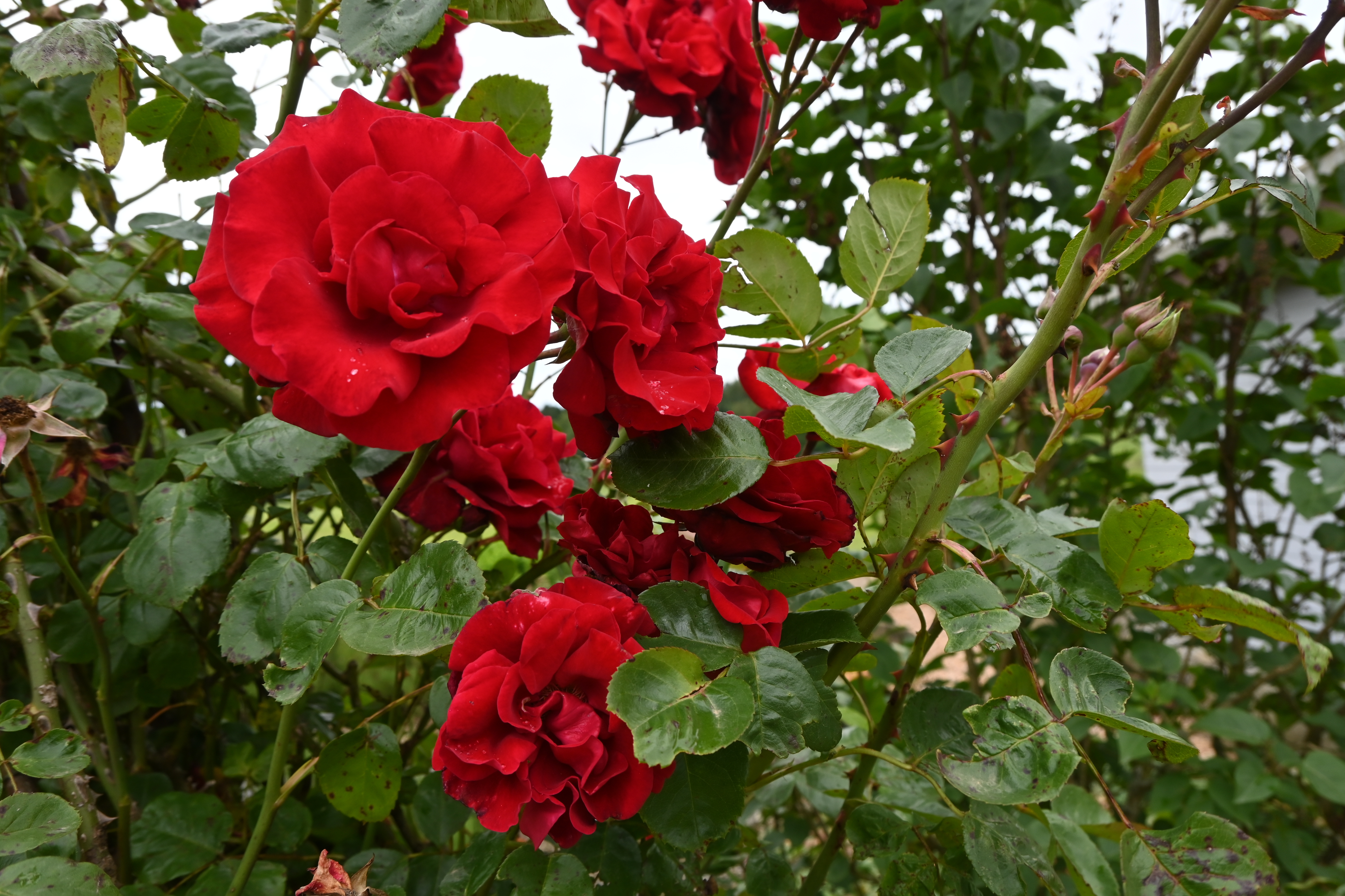 Wir unterscheiden bei den Rosen zwischen einmal blühenden und öfters blühenden. Bei den einmal blühenden wird im Sommer nicht geschnitten. Da können sich die Hagebutten entwickeln. Bei den öfters Blühenden werden die verblühten Blüten zurückgeschnitten. So regen wir die weitere Blütenbildung an.