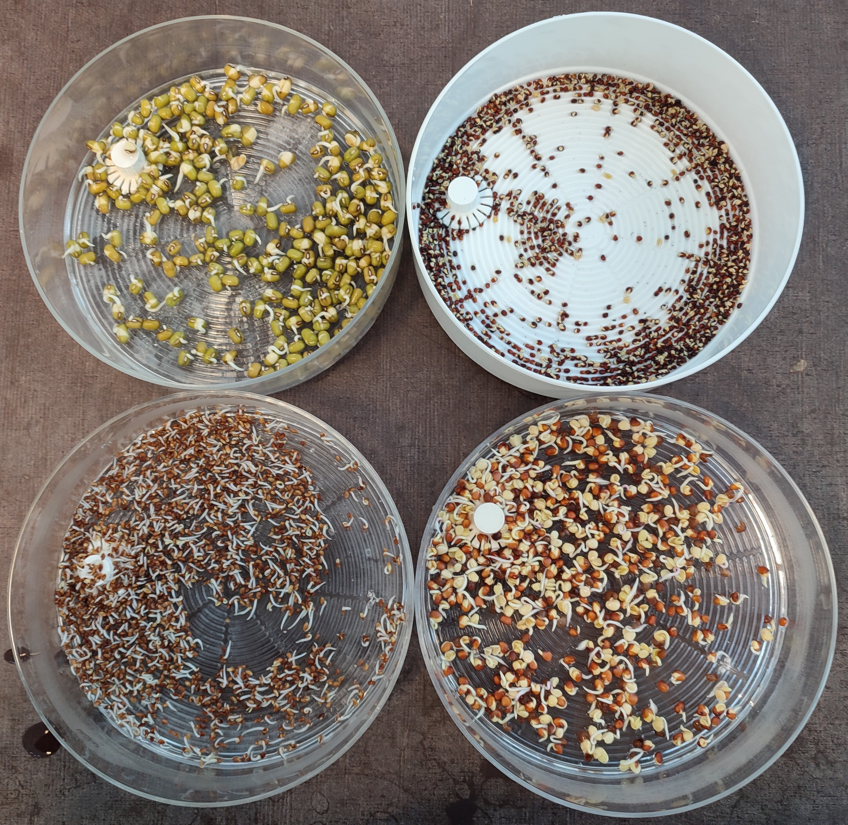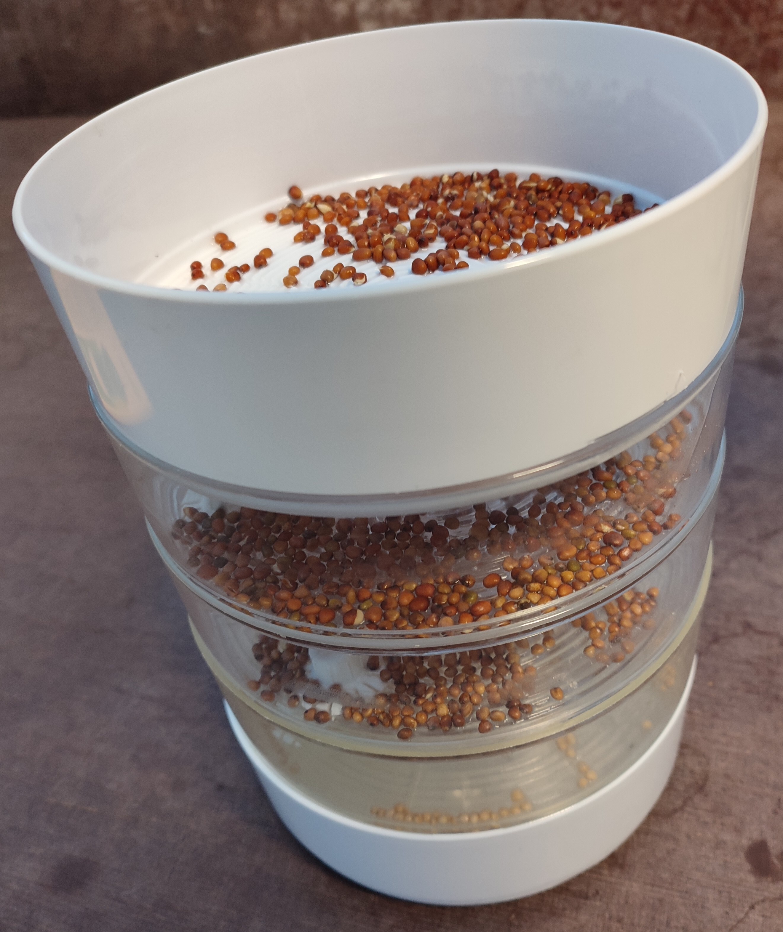 Stellen sie die Aussaaten bei Zimmertemperatur auf. Keimsprossen gemäss Anleitung, regelmässig durchspülen.
