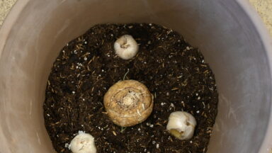 Diese decke ich wieder mit etwas Erde und als Abschluss lege ich eine Mischung aus kleinen Blumenzwiebeln drauf. Das können zum Beispiel Schneeglöggli, Krokus, Iris, Wildtulpen, Muscari etc. sein.